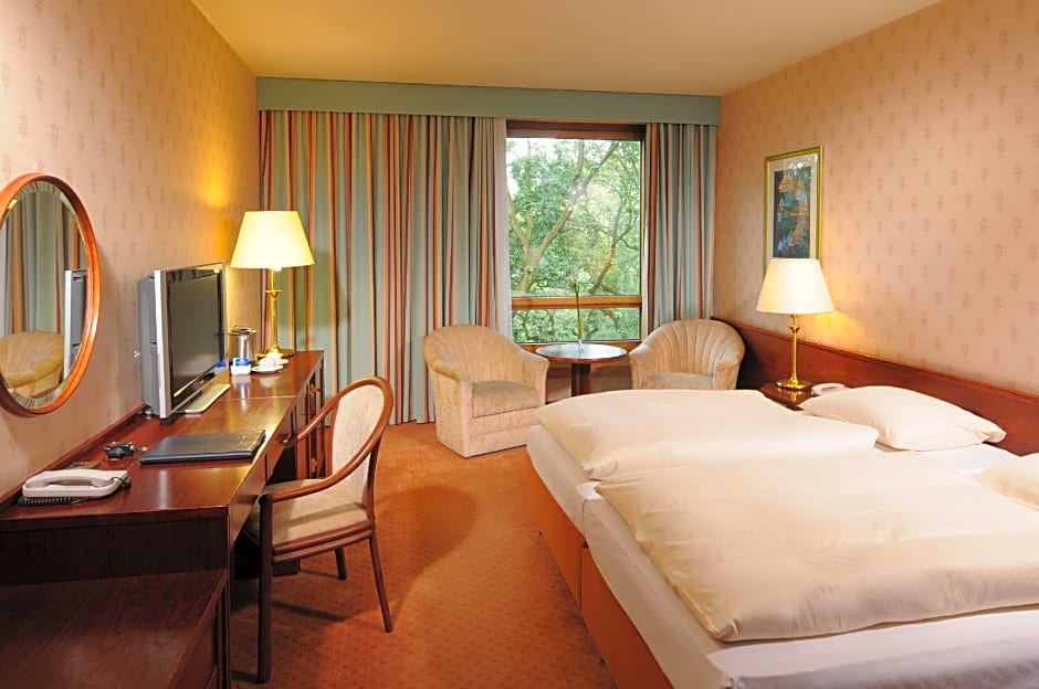 Located between the 4rd and the 5th floors, this room offers you a view of the green Bürgerpark Bremen or the adjoining Congress Centrum.